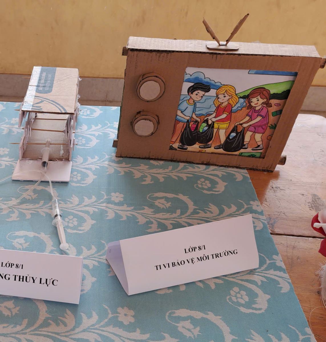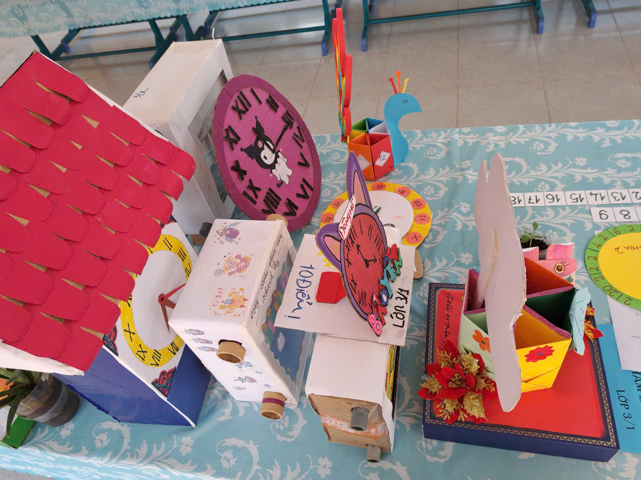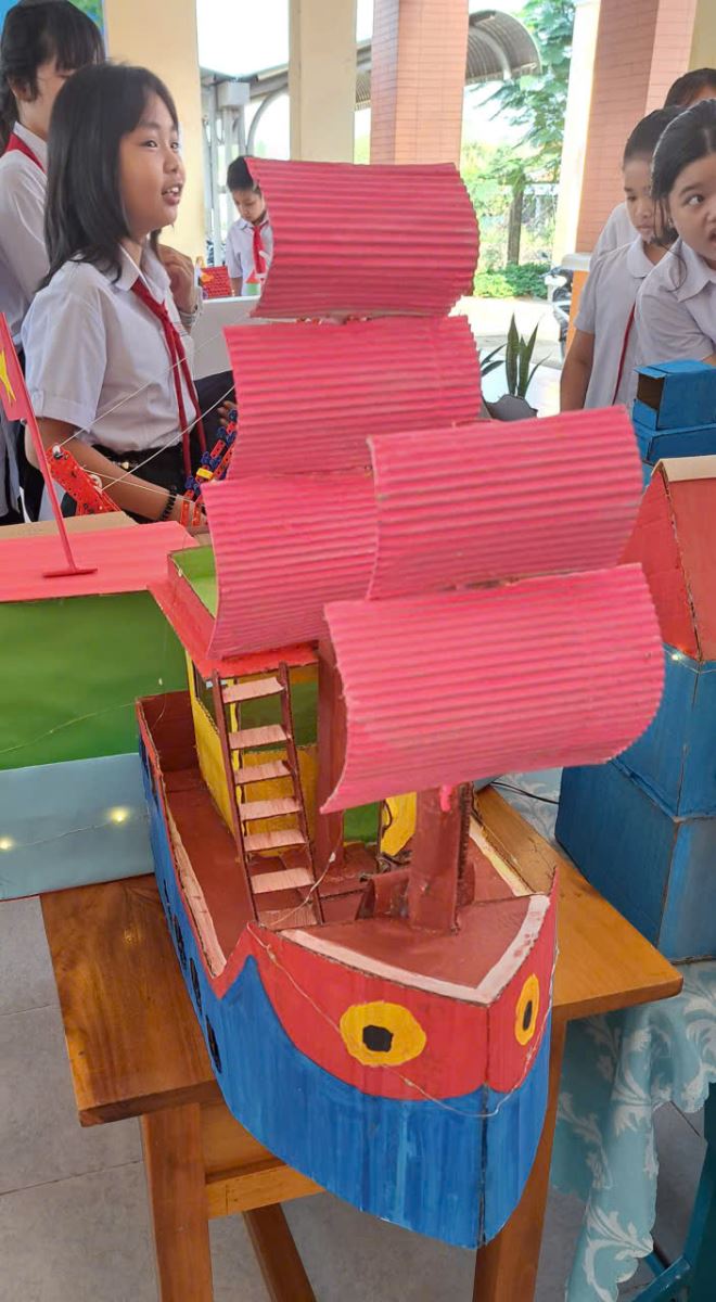 Điểm nhấn của ngày hội là khu vực trưng bày các sản phẩm STEM của học sinh từ khối 1 đến khối 9. Nhiều mô hình và sản phẩm sáng tạo được thiết kế từ những vật liệu quen thuộc, thể hiện sự khéo léo, sáng tạo và khả năng vận dụng kiến thức vào thực tế của học sinh. Mỗi lớp đều có sản phẩm tham gia trưng bày, góp phần làm cho không gian ngày hội thêm phong phú và hấp dẫn.