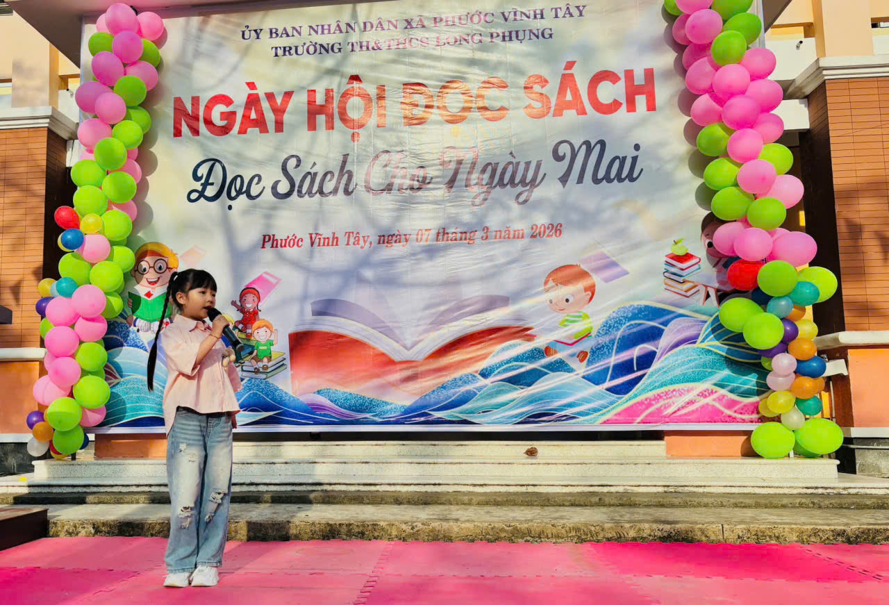 Thực hiện Thông tư số 16/2022/TT-BGDĐT ngày 22/11/2022 của Bộ Giáo dục và Đào tạo về Quy định tiêu chuẩn thư viện cơ sở giáo dục mầm non và phổ thông; căn cứ Kế hoạch số 198/KH-TH&THCSLP ngày 30/9/2024 của Trường Tiểu học và THCS Long Phụng về thực hiện nhiệm vụ năm học 2025–2026 và Kế hoạch hoạt động Thư viện năm học 2025–2026, sáng ngày 07/3/2026, Trường Tiểu học và THCS Long Phụng đã tổ chức Ngày hội đọc sách và Trưng bày các sản phẩm STEM năm 2026 tại sân trường (điểm chính) với sự tham gia của Ban lãnh đạo, giáo viên, nhân viên cùng toàn thể học sinh từ khối 1 đến khối 9.