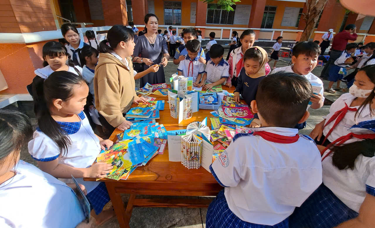 Chương trình ngày hội diễn ra sôi nổi với nhiều nội dung phong phú như: văn nghệ chào mừng, tuyên bố lý do – giới thiệu đại biểu, phát biểu khai mạc và các hoạt động trải nghiệm tại các góc đọc sách. Học sinh khối 1 và khối 2 tham gia hoạt động “Đọc truyện – đọc to nghe chung”, khối 3 và khối 4 tham gia góc “Khéo tay” với các hoạt động trả lời câu hỏi, vẽ tranh theo nội dung truyện đã đọc; học sinh khối 5 thực hiện hoạt động “Làm sách mini” dưới sự hướng dẫn của giáo viên chủ nhiệm. Các góc hoạt động được tổ chức sinh động, thu hút sự tham gia của giáo viên, phụ huynh và học sinh, tạo nên không khí vui tươi, hào hứng.